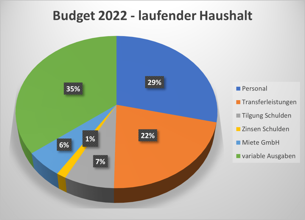Die Einnahmen der Gemeinde sind die Obergrenze, davon müssen als erstes mal die Fixkosten abgedeckt werden. Ich habe mir das Verhältnis bei der Budgeterstellung für das Jahr 2022 im Detail angeschaut.