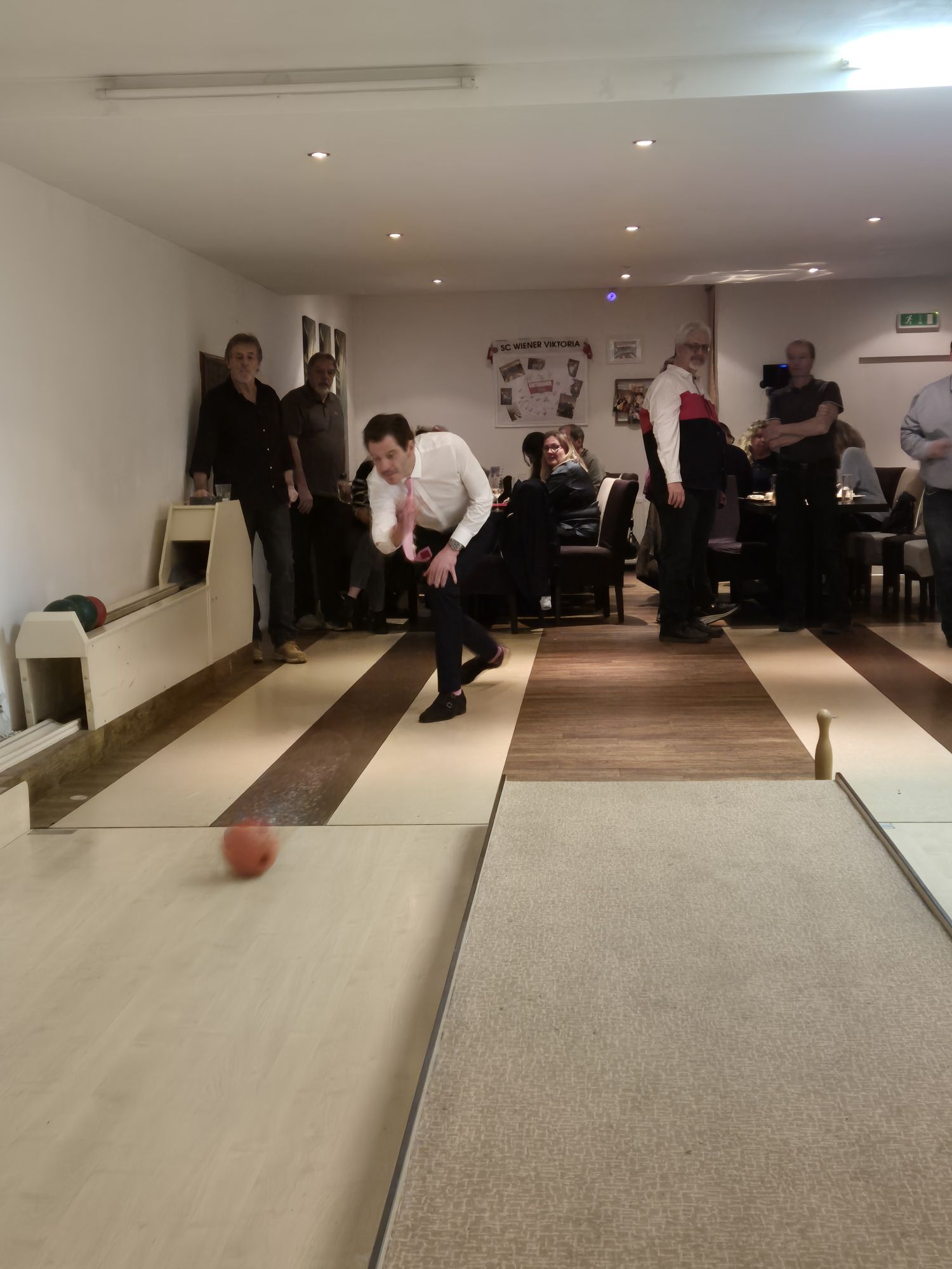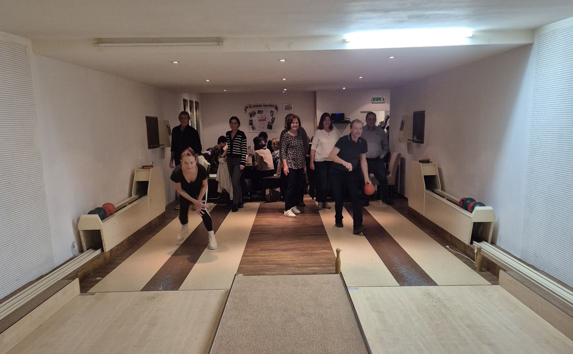 Nach der Arbeit ging es dann gleich weiter zum Gasthof Weinknecht. Wo wir uns zuerst gestärkt haben und dann unsere überschüssige Energie beim Kegeln rausgelassen haben. Natürlich kam auch der Austausch nicht zu kurz!