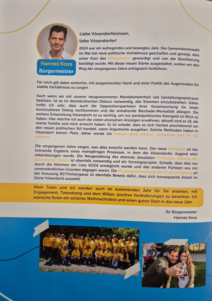 Natürlich gibt es auch heuer wieder eine Weihnachtsaussendung die mittlerweile auch schon in allen Postkästen in Vösendorf zu finden sein sollte.
