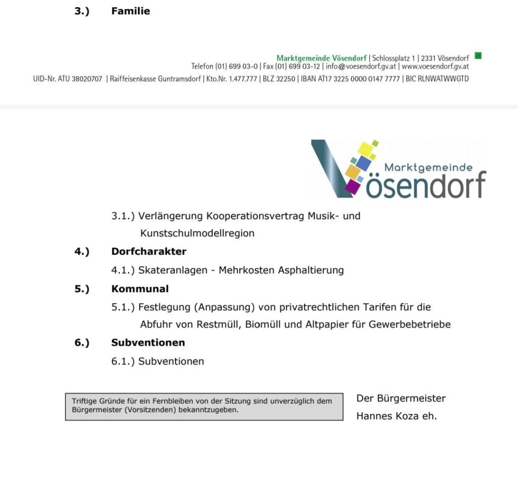Zusammenfassend möchte ich mich den Worten der SPÖ Vösendorf von November 2025, in leicht abgewandelter Form, bedienen