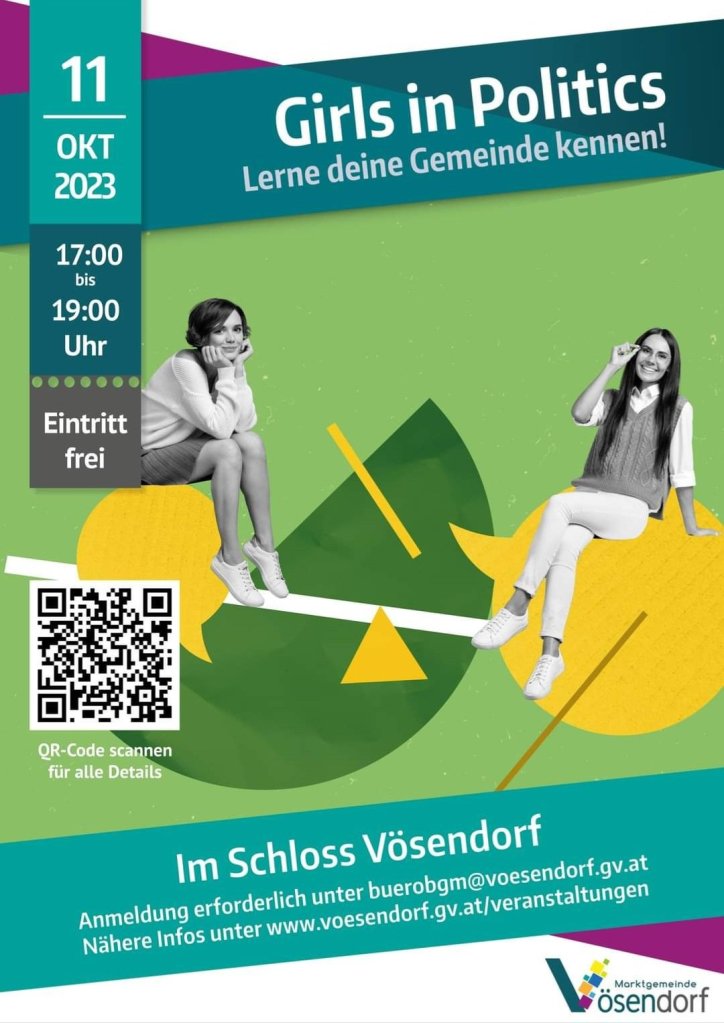 Am 11. Oktober ist der internationale Tag der Mädchen. Und zu diesem Anlass sind alle Vösendorfer Mädchen von 12 bis 18 Jahre eingeladen in den Kommunalpolitik-Alltag reinzuschnuppern. Ich finde das eine ganz tolle Initiative!