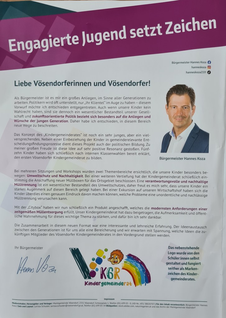 Gestern fand ich in meinem Briefkasten die Sonderaussendung zu unserem Kindergemeinderat.