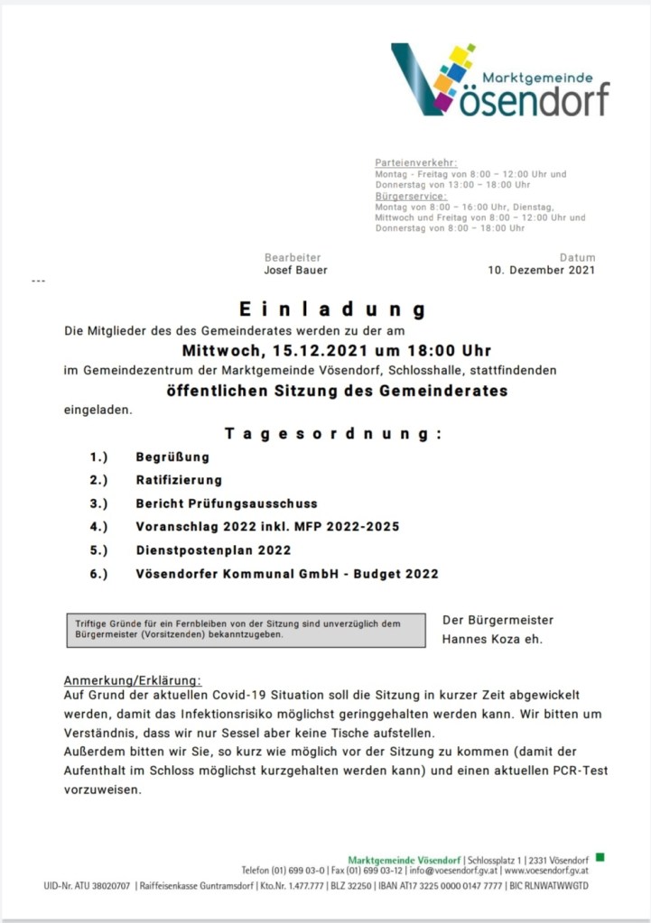 Dazu habe ich eine persönliche Meinung – Ich bin kein Akademiker und habe nur jahrzehntelange Erfahrung im Bereich Finanzen im öffentlichen Dienst. Ich kenne sehr viele, sehr gute Buchhalter(innen) die ich persönlich sehr schätze. Es gibt auch viele Menschen die meine Arbeit sehr schätzen. Aber nur weil jemand viel Erfahrung auf Sachbearbeiterebene hat, ist die Person noch lange nicht die richtige Person um Vösendorf in diesen finanziell herausfordernden Zeiten als Leiter der Buchhaltung durch die Krise zu bringen.