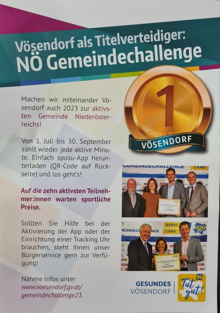 Über 1.000.000 Minuten haben die Vösendorfer seit 1. Juli 2023 bereits ersportelt! 26.000.000 Minuten alle Teilnehmer in ganz Niederösterreich.