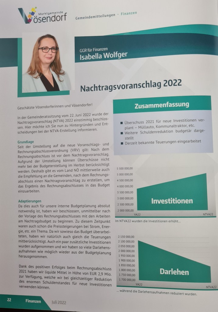 Wenn ich mir die Gemeindemitteilung genau anschauen, kann ich sagen, viel ist passiert in den letzten Wochen und noch sehr viel mehr steht auf dem Plan bis zum Sommer!