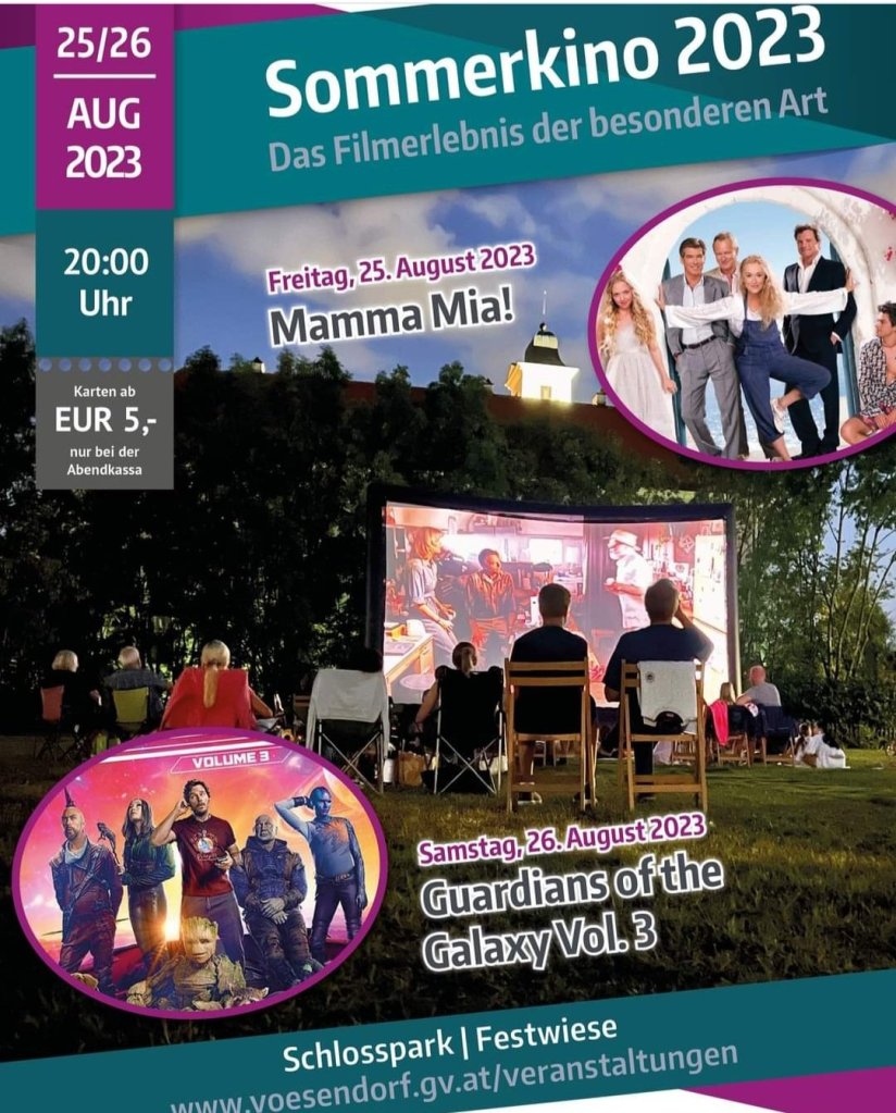 Am Fr 25.8. und Sa 26.8. findet dann wieder das wundervolle Sommerkino im Schlosspark fest. Welche Filme gezeigt werden, wird aber noch nicht verraten.