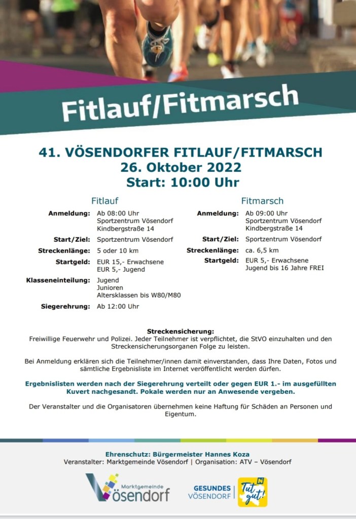 Und ein kleiner Hinweis am Rande, soviel ich weiß, ist unser Bürgermeister diesmal auch unter den Gehern! Also komm auch du mit! Egal ob beim Marsch oder beim Lauf! Lasst uns den Tag miteinander genießen! Alte Traditionen hochleben lassen oder neue begründen!