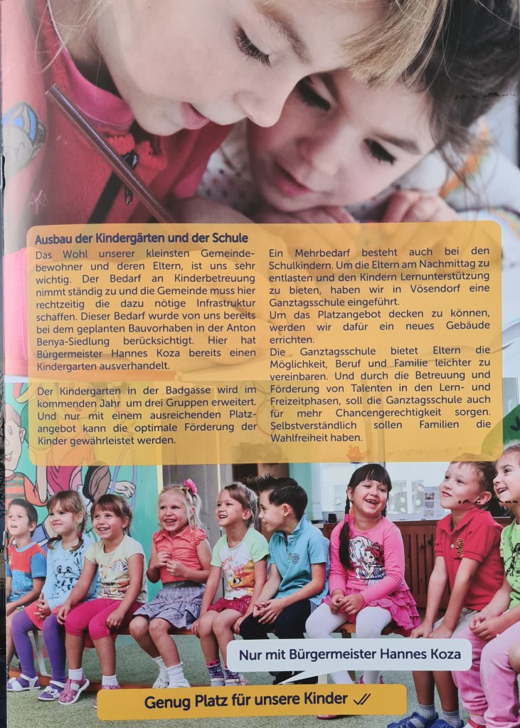 Vösendorf wächst. Nicht nur durch Zuzug, sondern auch durch Geburten. Daher ist die Kinderbetreuung ein extrem wichtiger Punkt. Unser Ziel ist es, den Eltern eine Wahlfreiheit zu ermöglichen um so Beruf und Familie individuell vereinen zu können.